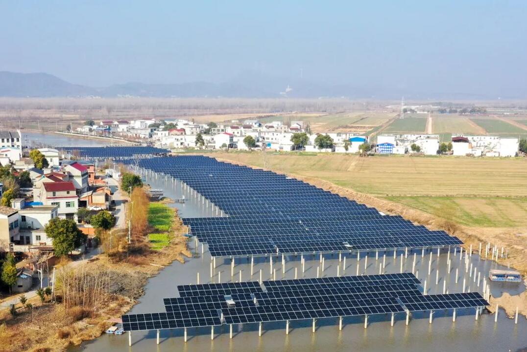 鏡頭調(diào)轉(zhuǎn)至安徽安慶皖河,河水波光粼粼,作業(yè)船穿梭其間,挖掘機(jī)、推土機(jī)、打樁機(jī)發(fā)出陣陣轟鳴,整齊排列的光伏板在春日暖陽下等待能量的蓄積,由中國(guó)能建安徽電建二公司承建的安徽安慶皖河200兆瓦光伏發(fā)電項(xiàng)目在春日陽光的照射下,正煥發(fā)出勃勃生機(jī)。