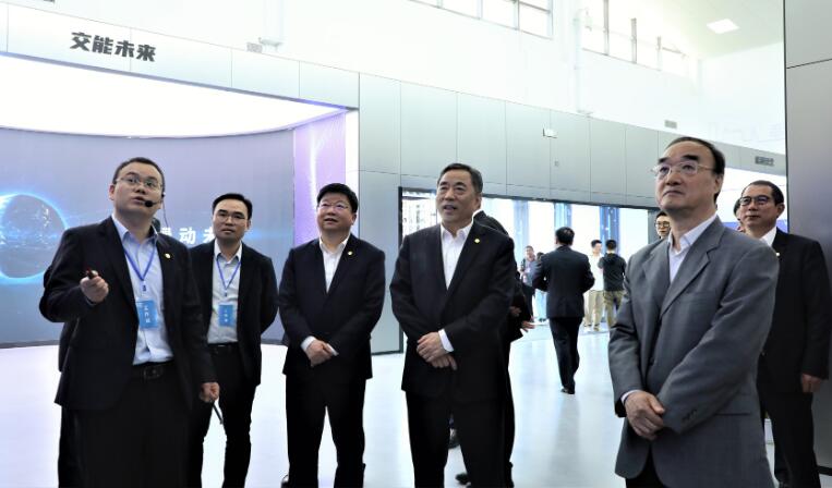 宋海良一行參觀了金鄉(xiāng)零碳智慧服務(wù)區(qū)、中國能建交能融合展廳,同項(xiàng)目管理人員、技術(shù)人員進(jìn)行交流,仔細(xì)觀看沙盤模型、智慧管理系統(tǒng)演示、光伏發(fā)電及儲能裝備、電動汽車充換電展示,對項(xiàng)目建設(shè)情況給予了高度肯定。