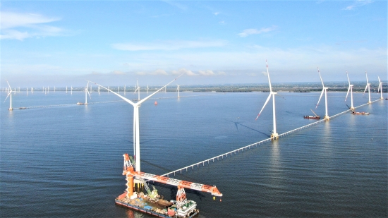 風(fēng)從海上來,吹來源源不斷的綠色能源。由中國電建承建的中企境外首個海上風(fēng)電EPC工程——薄寮三期、朔莊一期海上風(fēng)電項目,57臺國產(chǎn)“大風(fēng)車”,在92平方公里的海域內(nèi)勻速旋轉(zhuǎn),年上網(wǎng)電量約4.9億千瓦時,可滿足當(dāng)?shù)?5萬居民的平均年用電需求。