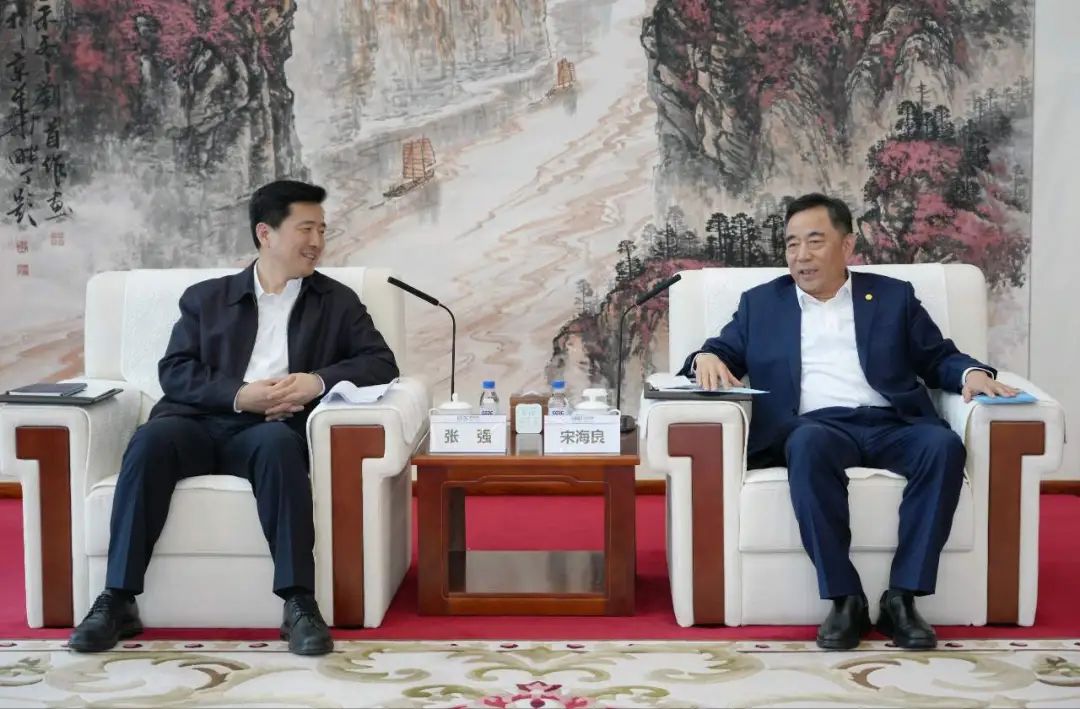 5月10日,中國能建黨委書記、董事長宋海良在公司總部與北京經(jīng)濟技術(shù)開發(fā)區(qū)工委書記張強會談。雙方就進一步加強新能源、綠色算力、綠色建材、城市“七網(wǎng)”融合等領(lǐng)域合作進行深入交流。