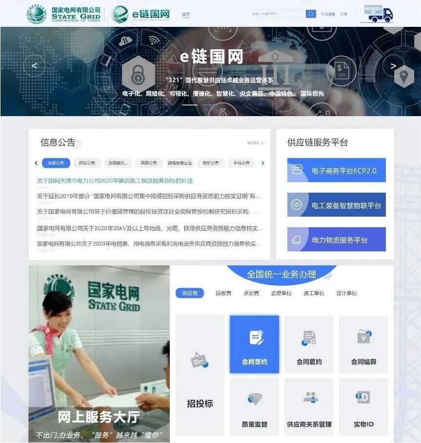 “e鏈國網(wǎng)”一站式服務(wù)門戶構(gòu)建現(xiàn)代智慧供應(yīng)鏈業(yè)務(wù)體系統(tǒng)一的PC前端窗口,以新一代電子商務(wù)平臺ECP2.0、企業(yè)資源系統(tǒng)ERP、電工裝備智慧物聯(lián)平臺EIP、電力物流服務(wù)平臺ELP、供應(yīng)鏈運營中心ESC等核心系統(tǒng)作為底層業(yè)務(wù)支撐,向內(nèi)外部用戶提供供應(yīng)鏈相關(guān)的業(yè)務(wù)流程和信息服務(wù),提升對內(nèi)部用戶、供應(yīng)鏈伙伴的服務(wù)水平。