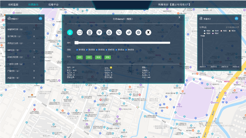 平臺(tái)根據(jù)不同智能設(shè)備的業(yè)務(wù)屬性,采用模塊化、自定義的形式將其進(jìn)行業(yè)務(wù)數(shù)據(jù)可視化處理。所有可視化數(shù)據(jù)均為前端采集數(shù)據(jù)的實(shí)時(shí)更新,既可根據(jù)運(yùn)營(yíng)方的業(yè)務(wù)需求定制集成界面展示內(nèi)容,也可支持?jǐn)U展更多的業(yè)務(wù)模塊。