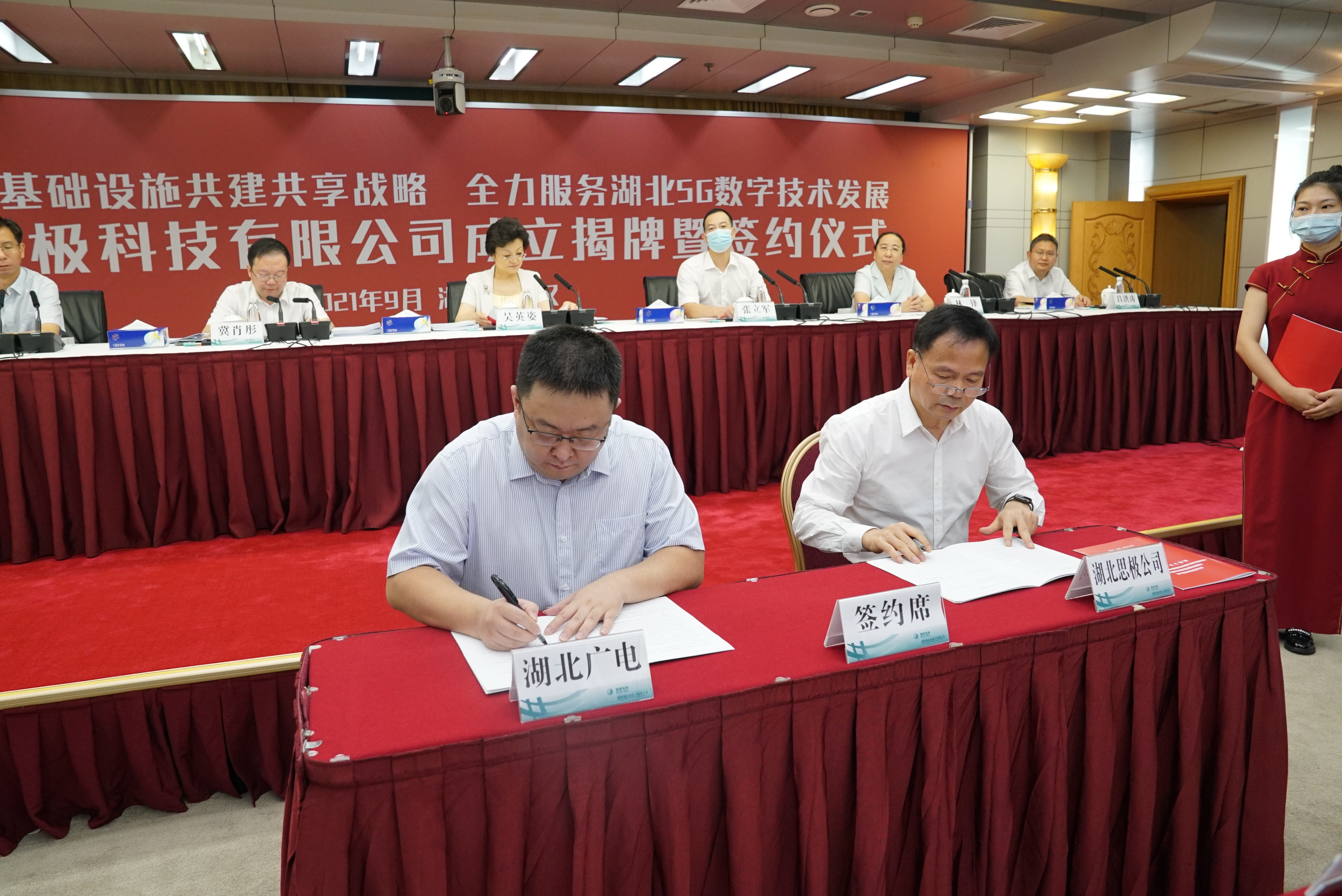 在揭牌儀式上,湖北思極科技分別與中國(guó)移動(dòng)通信集團(tuán)湖北有限公司、湖北省廣播電視信息網(wǎng)絡(luò)股份有限公司簽署合作協(xié)議,為實(shí)現(xiàn)社會(huì)資源集約共享邁出堅(jiān)實(shí)一步。