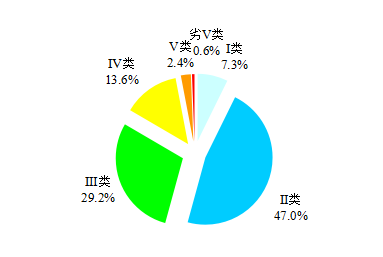 1940個國家地表水考核斷面中,水質(zhì)優(yōu)良(Ⅰ~Ⅲ類)斷面比例為83.4%,同比上升8.5個百分點;劣Ⅴ類為0.6%,同比下降2.8個百分點。主要污染指標為化學需氧量、總磷和高錳酸鹽指數(shù)。