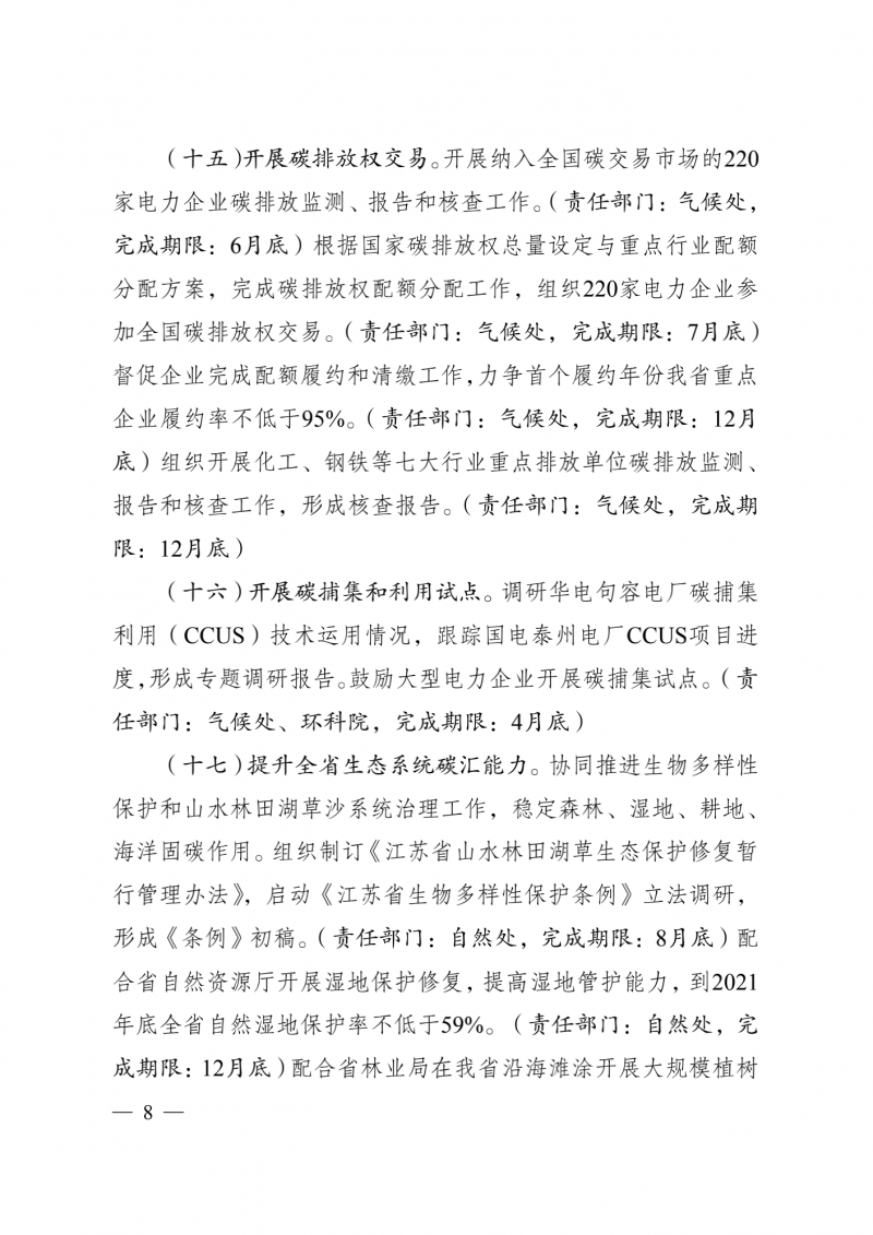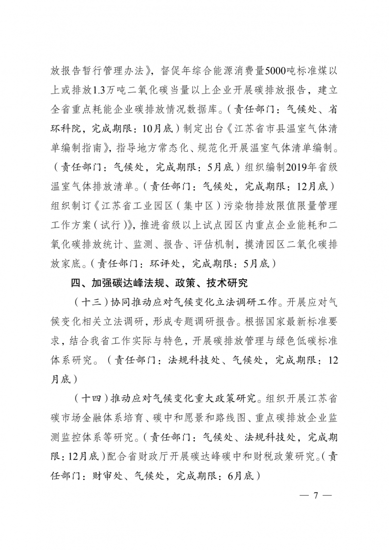 日前,《江蘇省生態(tài)環(huán)境廳2021年推動碳達(dá)峰碳中和工作計劃》印發(fā)。《計劃》是全國首創(chuàng)省生態(tài)環(huán)境系統(tǒng)關(guān)于碳達(dá)峰、碳中和的年度工作計劃,江蘇省欲推動構(gòu)建“1+1+6+9+13+3”碳達(dá)峰行動體系,建立碳減排監(jiān)測統(tǒng)計考核體系,督促年綜合能源消費量5000噸標(biāo)準(zhǔn)煤以上或排放1.3萬噸二氧化碳當(dāng)量以上企業(yè)開展碳排放報告,建立全省重點耗能企業(yè)碳排放情況數(shù)據(jù)庫。