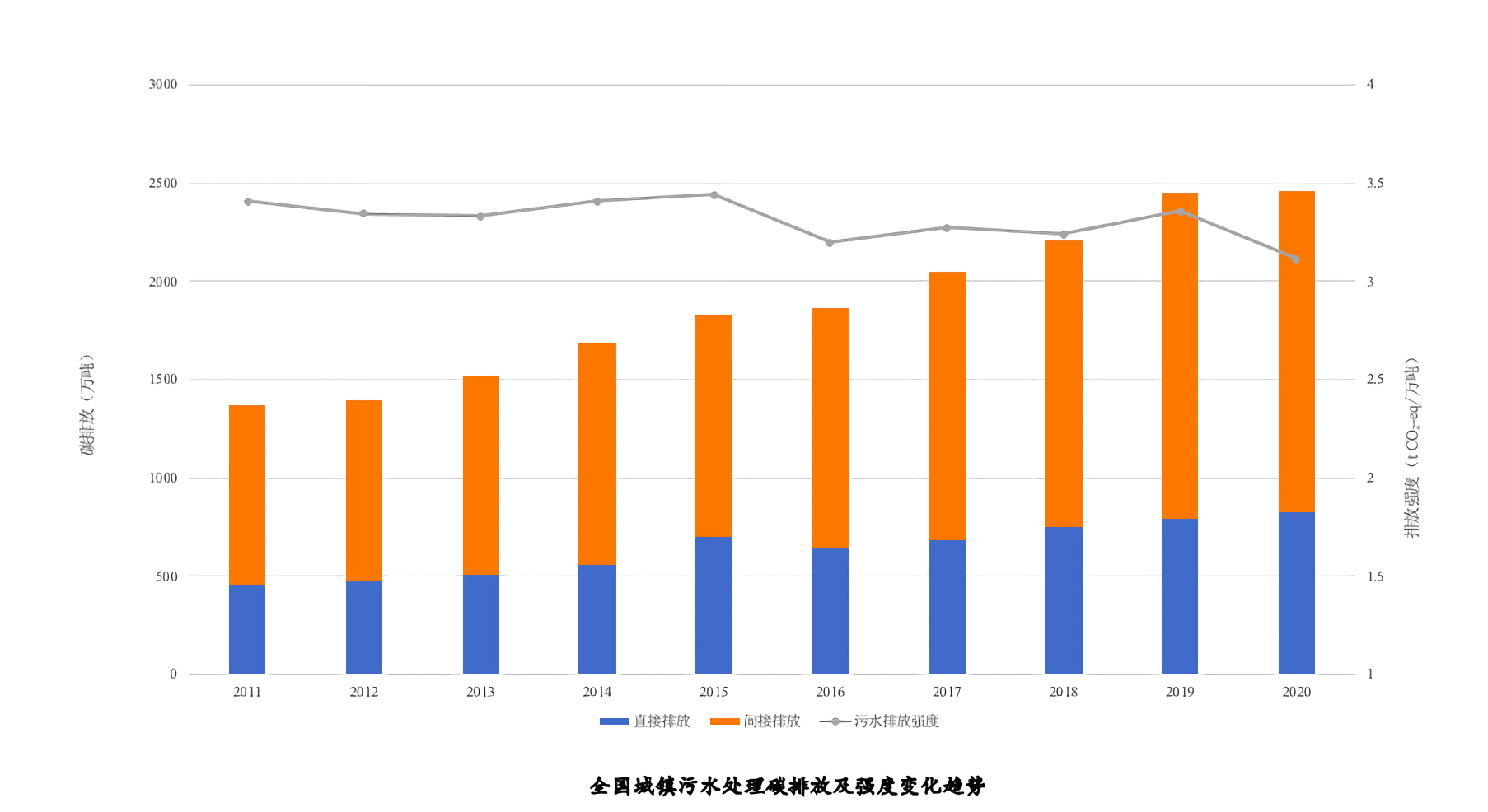 報告披露,全國城鎮(zhèn)污水直接碳排放和間接碳排放總體均呈現(xiàn)增長趨勢,2011-2020年均增速6.69%。圖/受訪者供圖