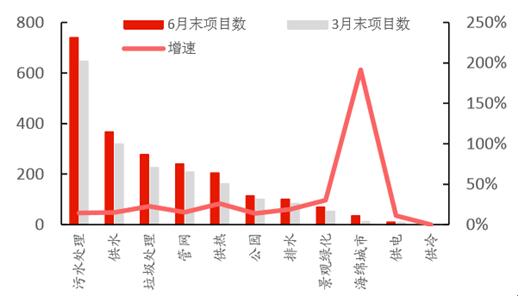 截止2016年6月和3月的環(huán)保PPP入庫項目投資總額