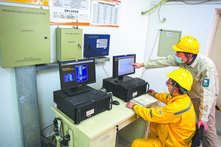 超低排放改造也被稱(chēng)為“超凈排放”“近零排放”,是指對(duì)燃煤發(fā)電機(jī)組環(huán)保設(shè)施做進(jìn)一步提效改造,使其污染物排放水平達(dá)到燃?xì)鈾C(jī)組標(biāo)準(zhǔn),即用煤發(fā)電跟用天然氣發(fā)電的污染物排放水平相當(dāng)。按國(guó)家標(biāo)準(zhǔn),“十三五”期間,燃煤發(fā)電機(jī)組的二氧化硫、氮氧化物、煙塵三項(xiàng)主要污染物排放標(biāo)準(zhǔn)要分別從100毫克/立方米、100毫克/立方米、20毫克/立方米,壓縮到35毫克/立方米、50毫克/立方米、10毫克/立方米。改造是否到位,成效是否可靠,數(shù)據(jù)聯(lián)網(wǎng)工作是檢驗(yàn)達(dá)標(biāo)和政策落地的重要環(huán)節(jié)。近日,記者走進(jìn)江蘇發(fā)電企業(yè)環(huán)保數(shù)據(jù)匯總分析的“中樞”,一探全省火力發(fā)電企業(yè)節(jié)能減排成效。