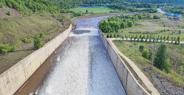 中環(huán)水務(wù)綏芬河五花山水庫開啟溢洪道閘門泄洪