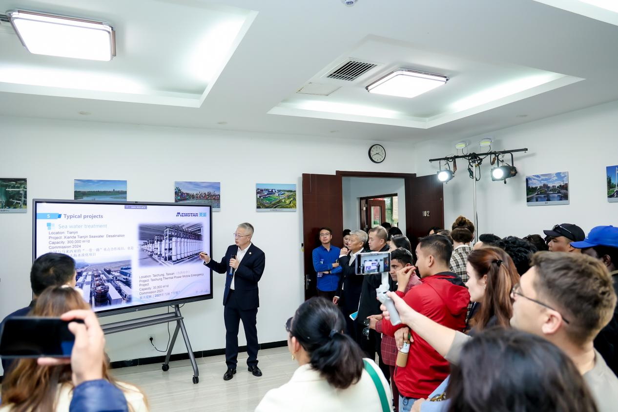 在近距離感受中信的水處理科技魅力后,在座談交流環(huán)節(jié),外媒對推動(dòng)全球環(huán)境治理的“中信方案”與“中信技術(shù)”興趣濃厚,圍繞如何平衡生態(tài)保護(hù)與經(jīng)濟(jì)發(fā)展、如何通過科技創(chuàng)新呵護(hù)綠色地球等話題,與中信環(huán)境展開熱烈而深入的交流。外媒團(tuán)記者將目光聚焦于中信環(huán)境的核心業(yè)務(wù)優(yōu)勢、美能膜技術(shù)亮點(diǎn)、海外市場布局、項(xiàng)目建設(shè)計(jì)劃等內(nèi)容,踴躍提問、積極發(fā)言。“中國茶與美能水給我們留下深刻印象,在水處理方面美能有何獨(dú)特技術(shù)優(yōu)勢?”“中信環(huán)境的生態(tài)技術(shù)和業(yè)務(wù)非常棒,未來是否有在中亞地區(qū)進(jìn)一步開拓市場的計(jì)劃?”“作為一家國際環(huán)保企業(yè),中信環(huán)境在不同地區(qū)有何不同市場策略?”“中信環(huán)境如何保證海外項(xiàng)目的可持續(xù)發(fā)展?”……熱盼合作的情緒在交流中不斷升溫,為座談會營造了更加積極和富有建設(shè)性的氛圍。