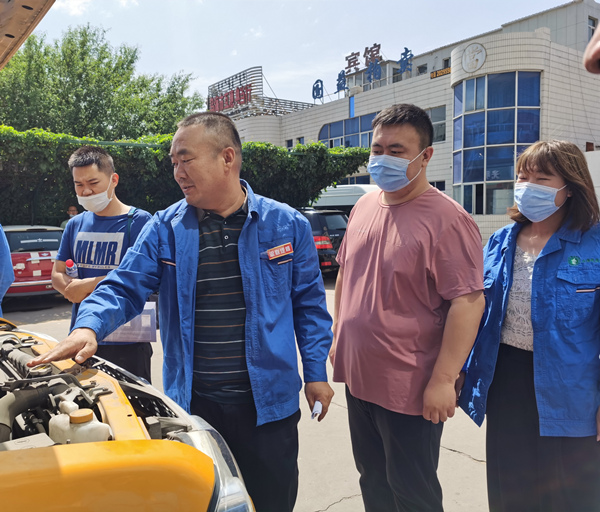 檢查現(xiàn)場,忠聯(lián)汽修廠郝總邊檢查邊為分局駕駛員進(jìn)行車輛日常維護(hù)及保養(yǎng)的講解。郝總講到駕駛員必須堅(jiān)持進(jìn)行日常維護(hù),車輛日常維護(hù)包括堅(jiān)持“三檢”,保持“四清”,防止“四漏”,每次出車前必須做到對(duì)汽車外觀進(jìn)行檢查、保持車容整潔;對(duì)汽車燃油、輪胎氣壓等進(jìn)行檢視補(bǔ)給;對(duì)汽車制動(dòng)、轉(zhuǎn)向、燈光等安全部位和位置以及發(fā)動(dòng)機(jī)運(yùn)轉(zhuǎn)狀態(tài)進(jìn)行檢視。駕駛員在郝總的講解下模擬了車輛日常維護(hù)。