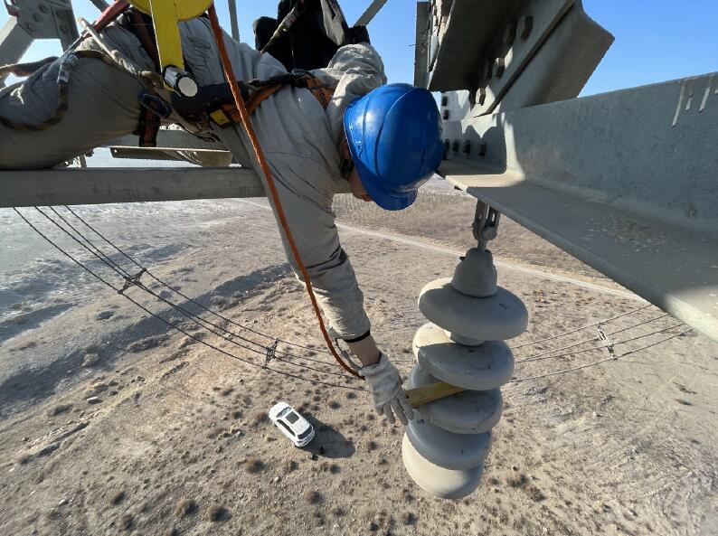 該處精心組織,提前對污染物較多的工業(yè)園區(qū)、礦場、發(fā)電廠等地進(jìn)行實地勘察,結(jié)合污區(qū)分布圖選定取樣點位置,制定2022年鹽密測試計劃。鹽密取樣工作對作業(yè)人員的技術(shù)以及作業(yè)環(huán)境要求極為嚴(yán)格,此次取樣工作采取地電位作業(yè)方式,作業(yè)人員在鐵塔上既要與周圍帶電體保持足夠的安全距離,還要對取樣絕緣子進(jìn)行精細(xì)操作,作業(yè)人員具備出色的身體素質(zhì)和心理素質(zhì),配合默契,圓滿完成工作。