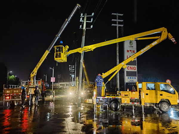 為不影響居民正常用電,該公司決定在凌晨開始搶修作業(yè),寒冬的夜晚,冷風(fēng)夾裹著落葉,借助著應(yīng)急燈和車燈發(fā)出的光,10千伏中糧線、艾源線的搶修工作仍在緊鑼密鼓的進(jìn)行著。停電、驗電、掛接地線,采取相應(yīng)安全措施后,搶修人員登桿拆除原電桿導(dǎo)線和金具。隨后,拔出被撞電桿,重新立好新電桿,所有的工作都在緊張而有序地進(jìn)行。12月3日15時,順利完成桿塔更換工作并驗收完畢,故障線路恢復(fù)供電。