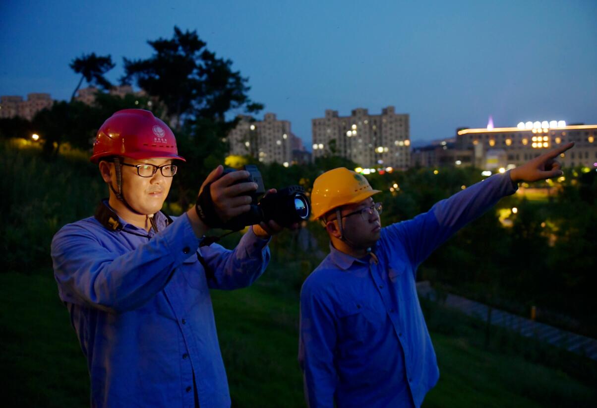 時(shí)間一分一秒過去,已是晚上22時(shí),夜巡人員仍然神情專注地記錄著各項(xiàng)數(shù)據(jù)。“還有山上的一基塔,以前有過發(fā)熱的情況,一定要上去看一下,草里敲一敲再走,防止有蛇。”童威在前面開路,同事緊緊跟在后面。