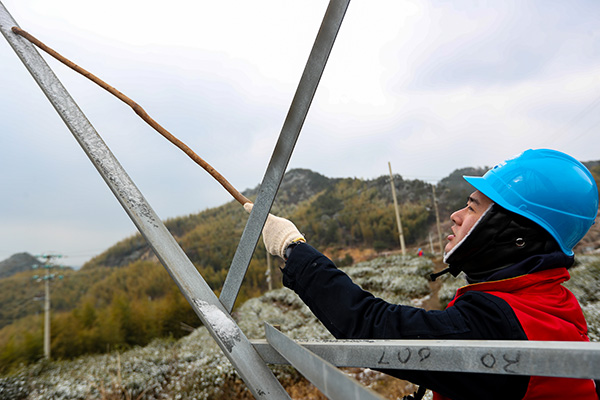 巡線員們一路踏冰前行,一路巡視線路和鐵塔,每到一基桿塔就利用望遠(yuǎn)鏡、測距儀等工具詳細(xì)監(jiān)測冰情,仔細(xì)觀察是否有安全隱患,并用手機拍攝下來,同時也對基礎(chǔ)、導(dǎo)地線、桿塔、金具絕緣子及接地裝置進(jìn)行了全面“問診”。如果遇到樹竹倒伏在線路上方位,還要現(xiàn)場進(jìn)行清理,以免影響線路的安全穩(wěn)定運行。