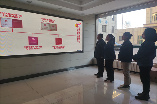 在第八個(gè)“12.4”國家憲法日來臨之際,該公司計(jì)劃于11月29日起,組織開展為期一周的2021年“12.4”國家憲法日暨憲法宣傳周活動。為營造良好的法治氛圍,該公司利用各類宣傳展架、門廳LED大屏滾動播放《憲法》等重要法律法規(guī)解讀動畫,并依托共產(chǎn)黨員服務(wù)隊(duì)成立6支“普法小分隊(duì)”,開展法律法規(guī)進(jìn)企業(yè)、進(jìn)機(jī)關(guān)、進(jìn)班組“三進(jìn)”普法活動,實(shí)行分眾普法、精準(zhǔn)普法。