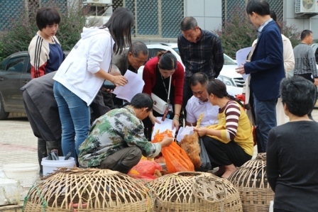 “這袋香米我要了,不要和我搶”,香米種植戶盧大哥的一袋袋大米還未從車上卸完,就被大家搶著訂購一空;“這筐香姜我要了,大爺快幫我裝袋稱重吧”,賣姜的陳大爺忙得不亦樂乎;“這只雞公好,我要了”···上午九時(shí),隨著該公司活動(dòng)指揮人員宣布現(xiàn)場(chǎng)購銷活動(dòng)正式開始,大家爭先恐后的圍到早早看中的農(nóng)產(chǎn)品攤前開始“搶購”,根本等不及農(nóng)戶們好好宣傳自己家的產(chǎn)品,一樣樣、一袋袋農(nóng)產(chǎn)品被熱情的采購者們“收入囊中”?,F(xiàn)場(chǎng)采購活動(dòng)開始一個(gè)小時(shí)不到,農(nóng)戶們帶來的10多樣價(jià)值約3萬元的農(nóng)產(chǎn)品就銷售一空,同時(shí),還接受了預(yù)購訂單5000余元。