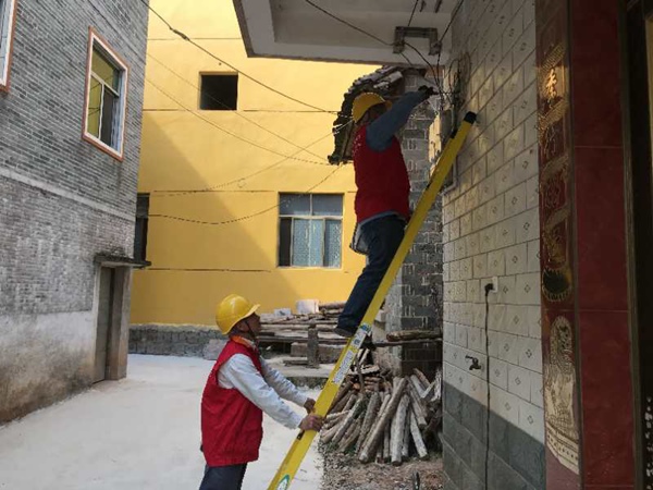 黨員服務(wù)隊為貧困戶家庭義務(wù)檢查用電線路以及用電設(shè)備情況,宣傳安全用電和節(jié)約用電常識,消除安全用電隱患。