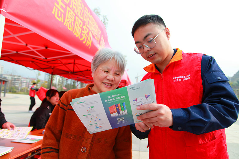 在印石公園,該公司黨員服務(wù)隊、青年志愿者服務(wù)隊通過擺攤設(shè)點,為來往行人宣傳安全用電、電力設(shè)施保護(hù)以及“網(wǎng)上國網(wǎng)”客戶端使用方法等各類電力咨詢服務(wù),引導(dǎo)大家安全用電、節(jié)約用電、指尖辦電。志愿者們以其熱情的服務(wù)、耐心細(xì)致的態(tài)度,得到了市民的點贊。