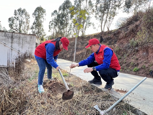 新栽的樹苗錯落有致、迎風(fēng)挺立,在春天的路邊小坡上形成了一道充滿生機(jī)的嫩綠色風(fēng)景線。共產(chǎn)黨員服務(wù)隊(duì)隊(duì)員、青年志愿者們用實(shí)際行動美化家園,助力環(huán)境保護(hù),踐行了“綠水青山就是金山銀山”戰(zhàn)略謀劃,努力為“碳達(dá)峰、碳中和”目標(biāo)如期實(shí)現(xiàn)貢獻(xiàn)力量。