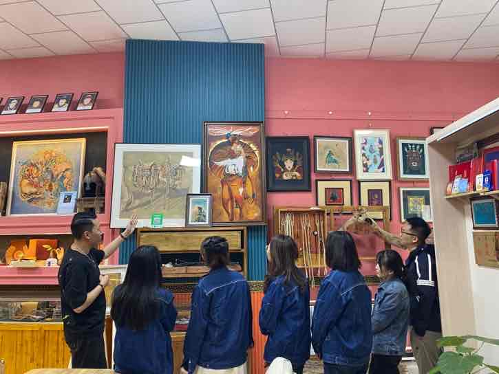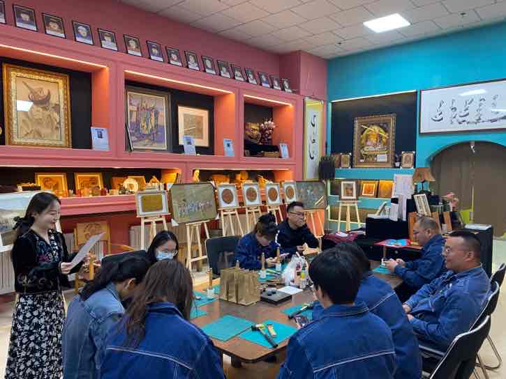 本次活動內(nèi)容豐富,黨員干部職工積極前往阿拉善盟非物質(zhì)文化遺產(chǎn)皮雕藝術(shù)傳承研究展示中心參觀并體驗非遺文化皮雕技藝。首先,由阿拉善盟非物質(zhì)文化遺產(chǎn)傳承人“皮雕匠人”張浩老師向大家介紹皮雕技藝在阿拉善地區(qū)傳承發(fā)展的歷史以及在展的各種皮雕藝術(shù)品,并現(xiàn)場演示了皮雕制作的基本技法,緊接著帶領大家制作傳統(tǒng)皮質(zhì)鑰匙包。職工們熱情高漲,紛紛動手操作,開料、刻線、描摹、染色、縫線,皮面和針線來回穿插,充分體驗到了非遺的魅力和手作的樂趣,最后在緊張刺激的民族團結(jié)知識問答題中結(jié)束了本次活動。