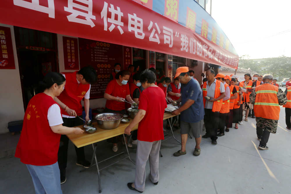 活動當(dāng)天,羅山縣供電公司團(tuán)青志愿者們提前來到羅山縣愛心粥屋,為愛心粥屋奉獻(xiàn)愛心物資及資金,積極開展志愿服務(wù)活動,協(xié)助粥屋工作人員為環(huán)衛(wèi)工人們準(zhǔn)備小米粥、大米飯、各種小菜等早餐食物,依次引導(dǎo)環(huán)衛(wèi)工人們就坐、取餐。待用餐完畢后,該公司志愿者們及時(shí)清掃地面、整理桌椅、清洗碗筷等,并向愛心粥屋全員和前來用餐的環(huán)衛(wèi)工人送上端午佳節(jié)的問候和祝福。