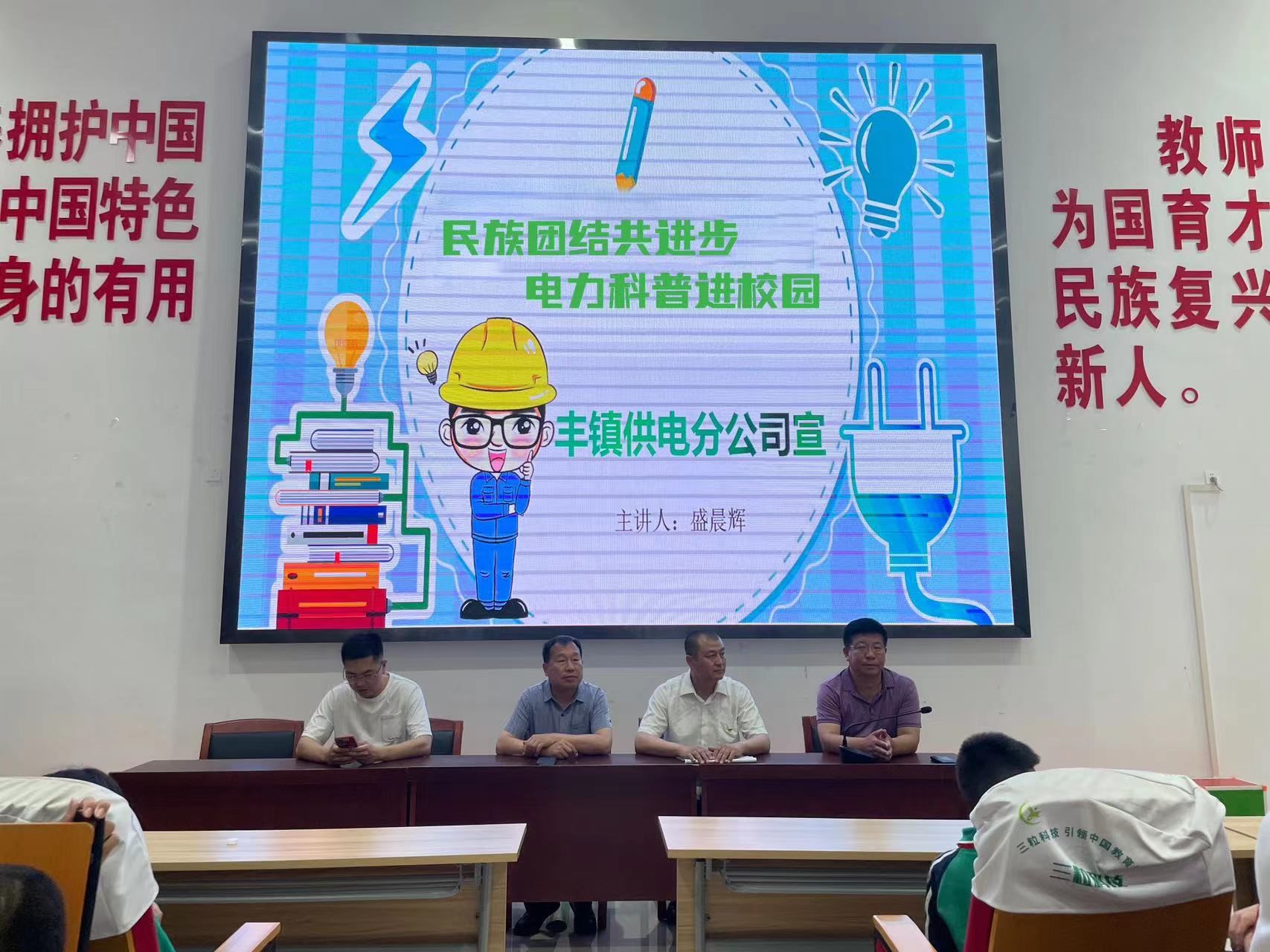中國電力網(wǎng)訊(通訊員 楊光)為深化民族團(tuán)結(jié)進(jìn)步教育,貫徹落實(shí)好中央民族工作會(huì)議精神,教育引導(dǎo)廣大中小學(xué)生鑄牢中華民族共同體意識(shí),6月25日,豐鎮(zhèn)供電分公司組織志愿者們深入到京蒙小學(xué),開展“民族團(tuán)結(jié)共進(jìn)步電力科普進(jìn)校園”志愿服務(wù)活動(dòng),為該校小學(xué)30余名蒙古族小朋友上了一堂別開生面的“雙語”安全知識(shí)課。