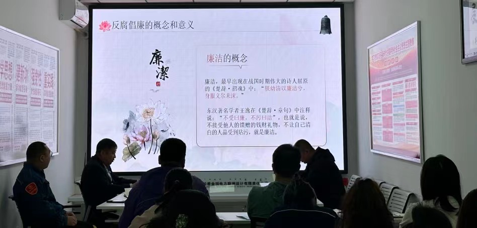 中國電力網(wǎng)訊(通訊員 楊雅婷) 為切實履行好全面從嚴治黨主體責任,強化黨員干部職工的紀律觀念和清廉意識,10月20日,設計公司黨支部組織開展新時代講習《反腐倡廉專題教育》主題黨課,黨員職工及積極分子共14人參加。