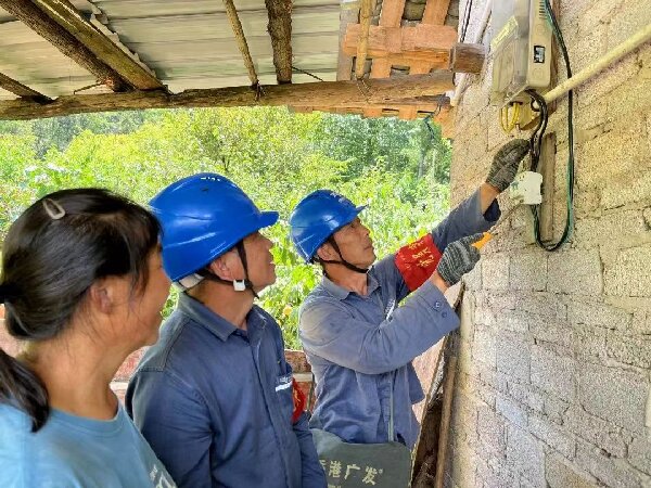 石阡供電局黨員服務(wù)隊(duì)對(duì)農(nóng)戶家中用電設(shè)備進(jìn)行檢查(任俊旭攝)