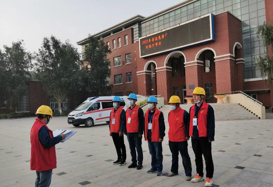 2021年全國普通高校統(tǒng)一招生考試阿拉爾市共設(shè)置塔里高級中學(xué)、第一師高級中學(xué)、塔里木職業(yè)技術(shù)學(xué)院3個(gè)校區(qū)2個(gè)考點(diǎn)84個(gè)考場,高考報(bào)名2041人??紤]到疫情防控仍處于關(guān)鍵時(shí)刻,夏季沙塵天氣提前到來,極端大風(fēng)天氣隨時(shí)都有可能發(fā)生的情況,保電工作增加了嚴(yán)峻考驗(yàn)和工作難度。