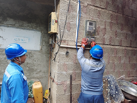 08月24日接到煙農(nóng)瞿世昌電話說(shuō)他家武偉地墨武烤房用電不正常,由于接連幾日的大雨,導(dǎo)致山倒土塌因此車輛未能到達(dá)工作現(xiàn)場(chǎng)。詩(shī)禮供電所工作的光明使者趙瑞玨(工作負(fù)責(zé)人),帶領(lǐng)工作班成員(楊瑤、李金林)一同扛起所需安全工器具及個(gè)人安全防護(hù)用品徒步前行對(duì)瞿世昌戶用電排查,人們常說(shuō):安全是條繩,牽著千萬(wàn)人,安全是根線,連著親人的掛念,故障處理后,瞿世昌拉著供電所員工的手非常感激,是供電所人員的及時(shí)到來(lái),確保了他家的烤煙用電。