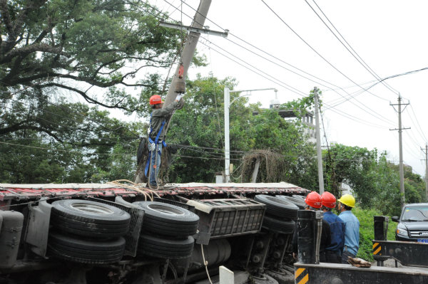 中國電力網訊 9月19日上午9點20分,由于一場意外的交通事故,10千伏夢谷線76#桿被一輛側翻的貨車壓倒。而10千伏夢谷線主要承擔廣昌縣夢谷電商創(chuàng)業(yè)園以及附近答田村數(shù)個村小組的供電任務,情況緊急,國網廣昌縣供電公司甘竹供電所在接到搶修工單的第一時間立即啟動應急搶修預案,組織了一只數(shù)十人的搶修隊伍前往事故發(fā)生地點,并在趕往現(xiàn)場的同時,安排相關臺區(qū)管理員做好停電用戶解釋工作。