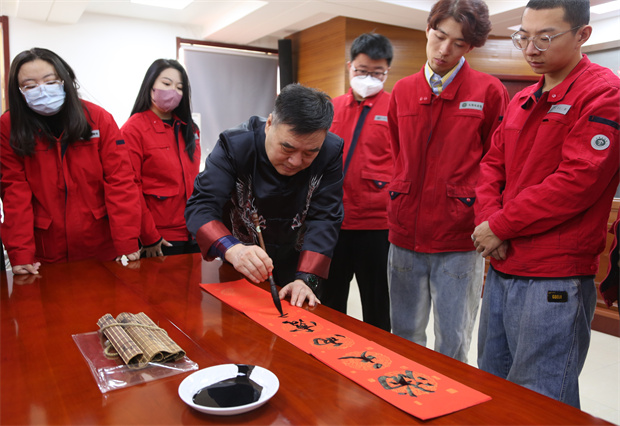 活動中不僅觀看了書法大家揮灑自如、展示書法魅力的書寫,還激發(fā)了職工學(xué)習(xí)書法的熱情。宋永江主席隨即在現(xiàn)場進(jìn)行了書法傳授,用四句話講述了書法要點:分割均勻、舉一反三、學(xué)會分析、穿插移正。精準(zhǔn)的教授,讓現(xiàn)場的青工們躍躍欲試。大家聚精會神地欣賞著剛寫好的春聯(lián),有的還跟著讀了出來。參加活動的書法愛好者劉亭汝說“春節(jié)是我們的傳統(tǒng)節(jié)日,貼對聯(lián)是象征吉祥,表達(dá)人們對美好生活的向往,很高興能為我們基層職工帶來這樣一份有意義的新春祝福。”新入職員工也表示宋主席的書法飄若浮云,矯若驚龍,字里行間流露出對單位員工真切的祝福,讓我們心里暖暖的。