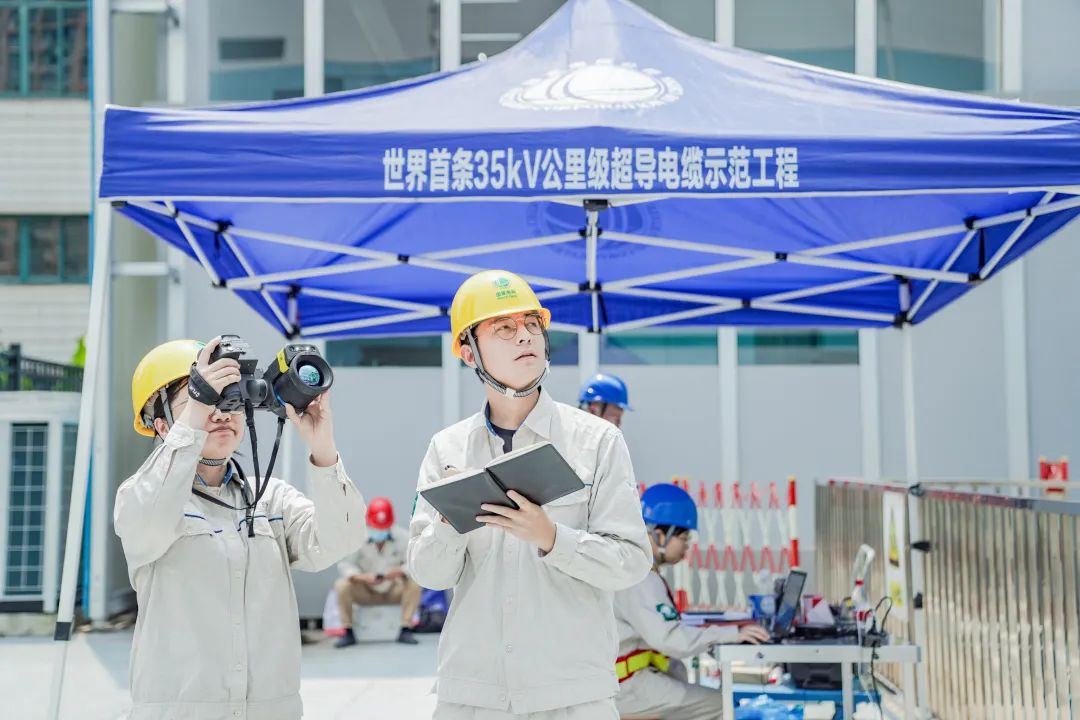 上海市南供電公司運(yùn)維檢修員工為超導(dǎo)輸電工程紅外測溫。