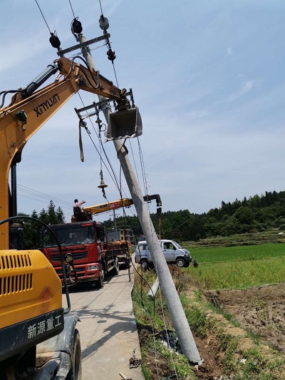 險(xiǎn)情就是命令。敖溪供電所所長助理曾海林迅速組織搶修人員趕赴事故現(xiàn)場。7時25分,供電員工抵達(dá)現(xiàn)場,立即啟動突發(fā)事故搶修預(yù)案,并在現(xiàn)場 拉起了警戒線,避免車輛、行人靠近。確?,F(xiàn)場安全措施到位后,曾海林協(xié)調(diào)挖掘機(jī)、吊車等設(shè)備就位,準(zhǔn)備電桿、導(dǎo)線等施工材料,做好搶修前的各項(xiàng)準(zhǔn)備工作。
