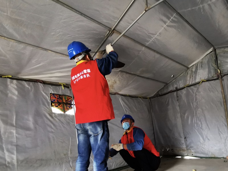 還沒(méi)休息幾分鐘又接到伊寧縣奎太買(mǎi)里村委會(huì)電話,“夏師傅,村委會(huì)要在村口建一個(gè)疫情檢查點(diǎn),需要接電照明,你們趕緊來(lái)處理一下。”黨員服務(wù)隊(duì)隊(duì)員夏文亮與他的搭檔做好消毒工作后,帶上安全工器具立即前往村委會(huì)防疫點(diǎn),經(jīng)過(guò)半個(gè)多小時(shí)的工作,村委會(huì)防疫點(diǎn)帳篷內(nèi)照明燈亮起來(lái)了。
