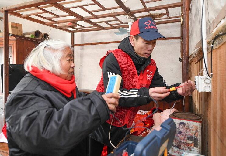 1月8日,志愿者帶著禮物來到老人家中,他們給老人圍上溫暖的圍巾,穿上厚實(shí)的外套,并給她鋪上嶄新的被子,老人笑得合不攏嘴。同時(shí),志愿者還對(duì)老人房中的室內(nèi)電氣線路進(jìn)行了檢查與維修,為其確保用電安全。志愿者胡群豐表示:“天氣寒冷,能夠給老人送上安全與溫暖,我們很自豪。”