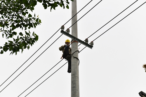 中國電力網(wǎng)訊 5月12日,江蘇連云港東??h供電公司黃川供電所員工在該鎮(zhèn)桃李村西湖草莓種植園供電線路附近,為村民草莓大棚灌溉用電接線裝表。當下正值草莓秧苗結果沖刺期,黃川供電所接到農(nóng)戶用電申請后,立即進行勘察接電,保障農(nóng)戶大棚及時灌溉用電。