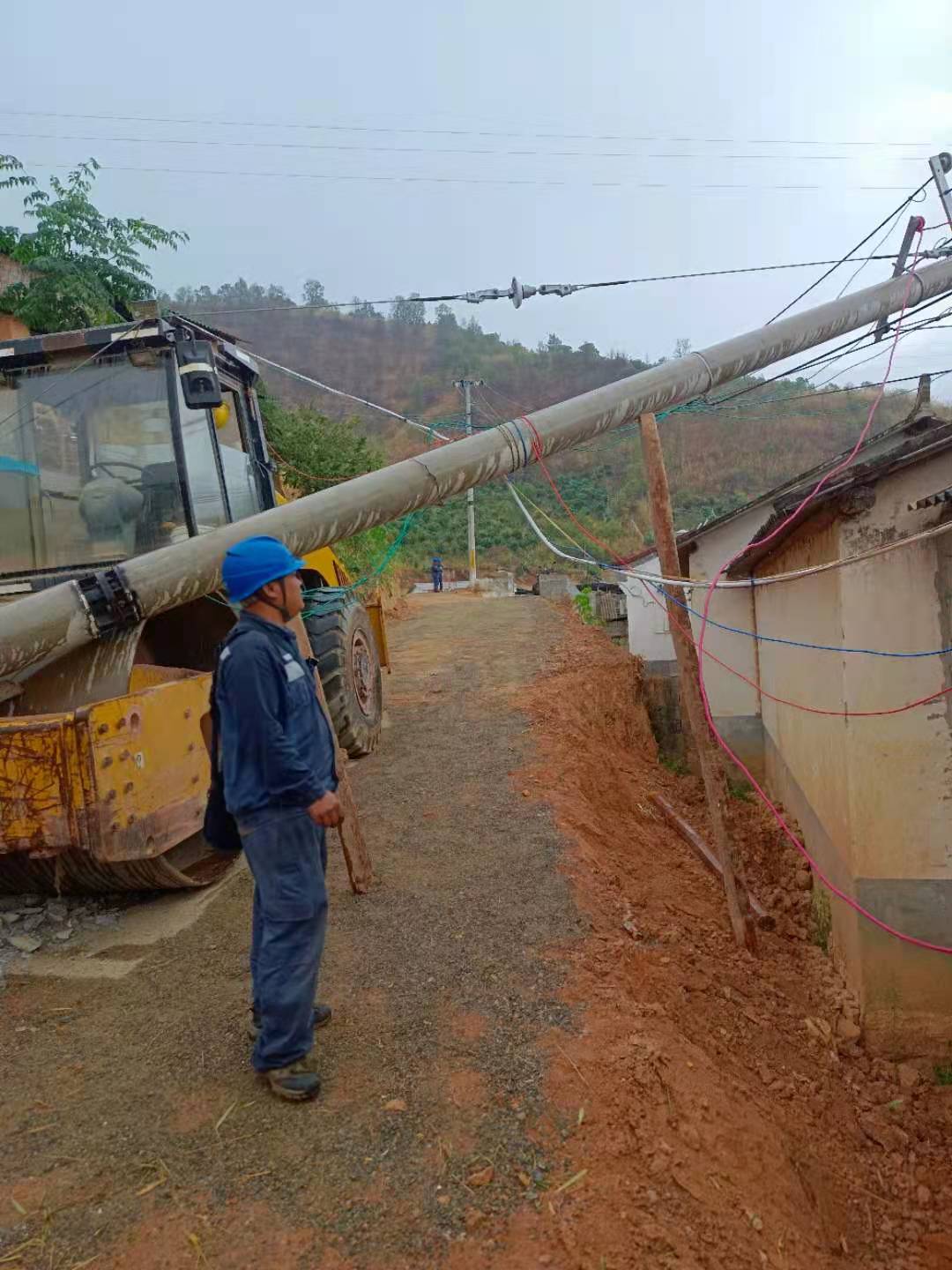 近日,臨滄云縣供電局配電管理一所接到愛華鎮(zhèn)延平4組村民反映村里無電。配電管理一所搶修班立即組織開展故障巡視,經(jīng)排查發(fā)現(xiàn)受惡劣天氣影響,故障為0.4千伏線路發(fā)生倒桿斷線。查明原因后,搶修班迅速組織開展搶修作業(yè)。