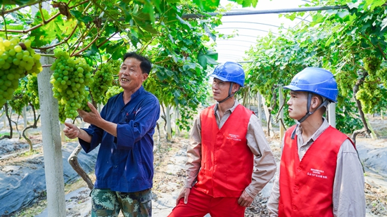 本網(wǎng)訊 “多虧了供電公司提前為我們安裝變壓器、架設(shè)線路,讓我們的冷庫和灌溉系統(tǒng)全天候工作,葡萄才能獲得大豐收。”8月23日,遞鋪街道熊出沒葡萄園內(nèi)的農(nóng)戶指著一串串青翠欲滴的葡萄對(duì)前來檢修用電的紅船共產(chǎn)黨員服務(wù)隊(duì)激動(dòng)地說道。