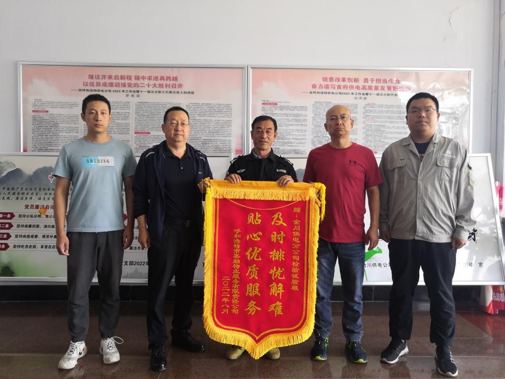 中國電力網(wǎng)訊  近日,金川供電分公司收到了來自呼和浩特市嘉融物業(yè)服務(wù)有限責(zé)任公司的致謝錦旗——“及時(shí)排憂解難貼心優(yōu)質(zhì)服務(wù)”,該物業(yè)公司的兩名工作人員作為代表向金川供電分公司迅速解決花樣年華小區(qū)停電故障表示感謝。