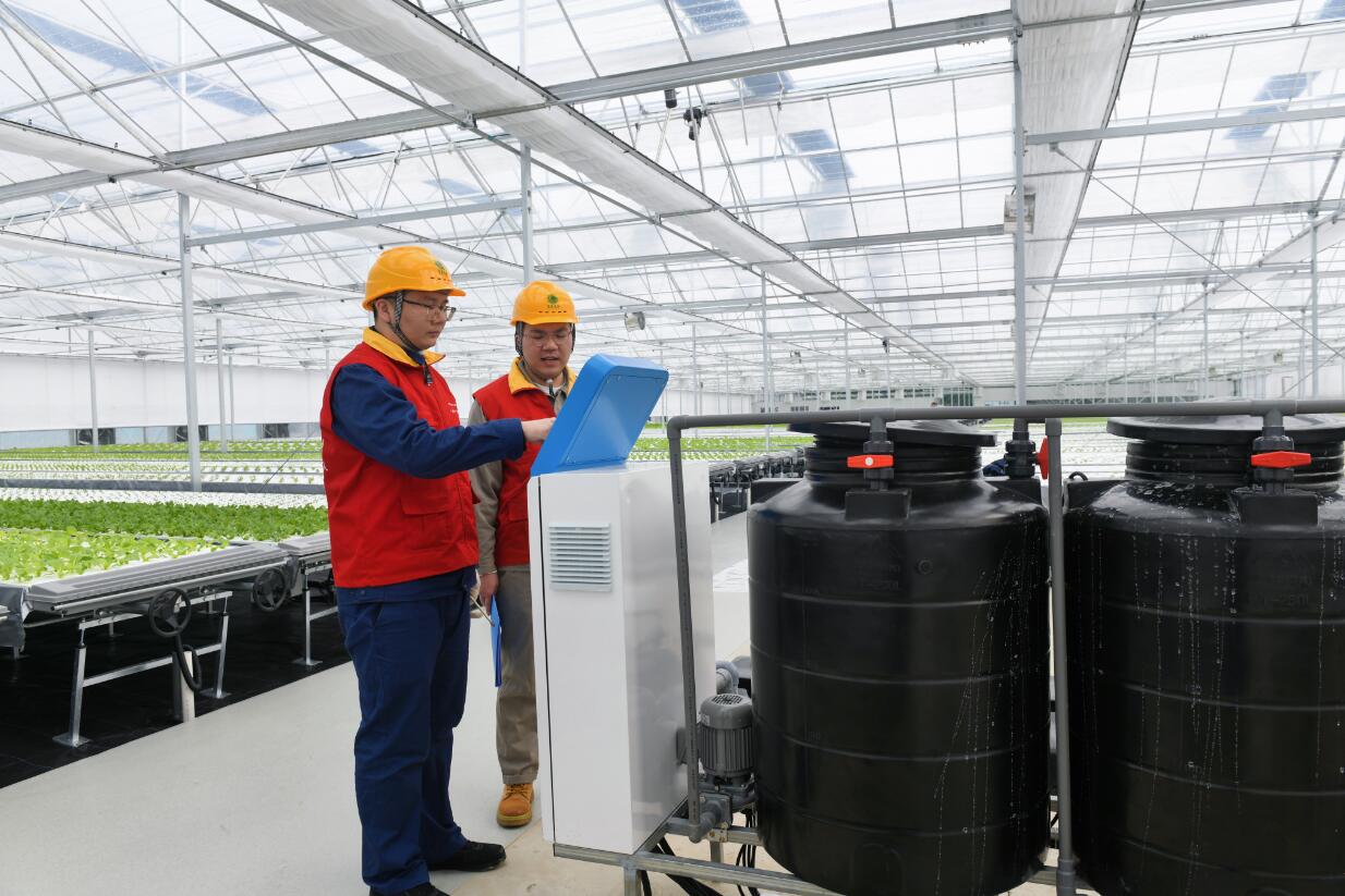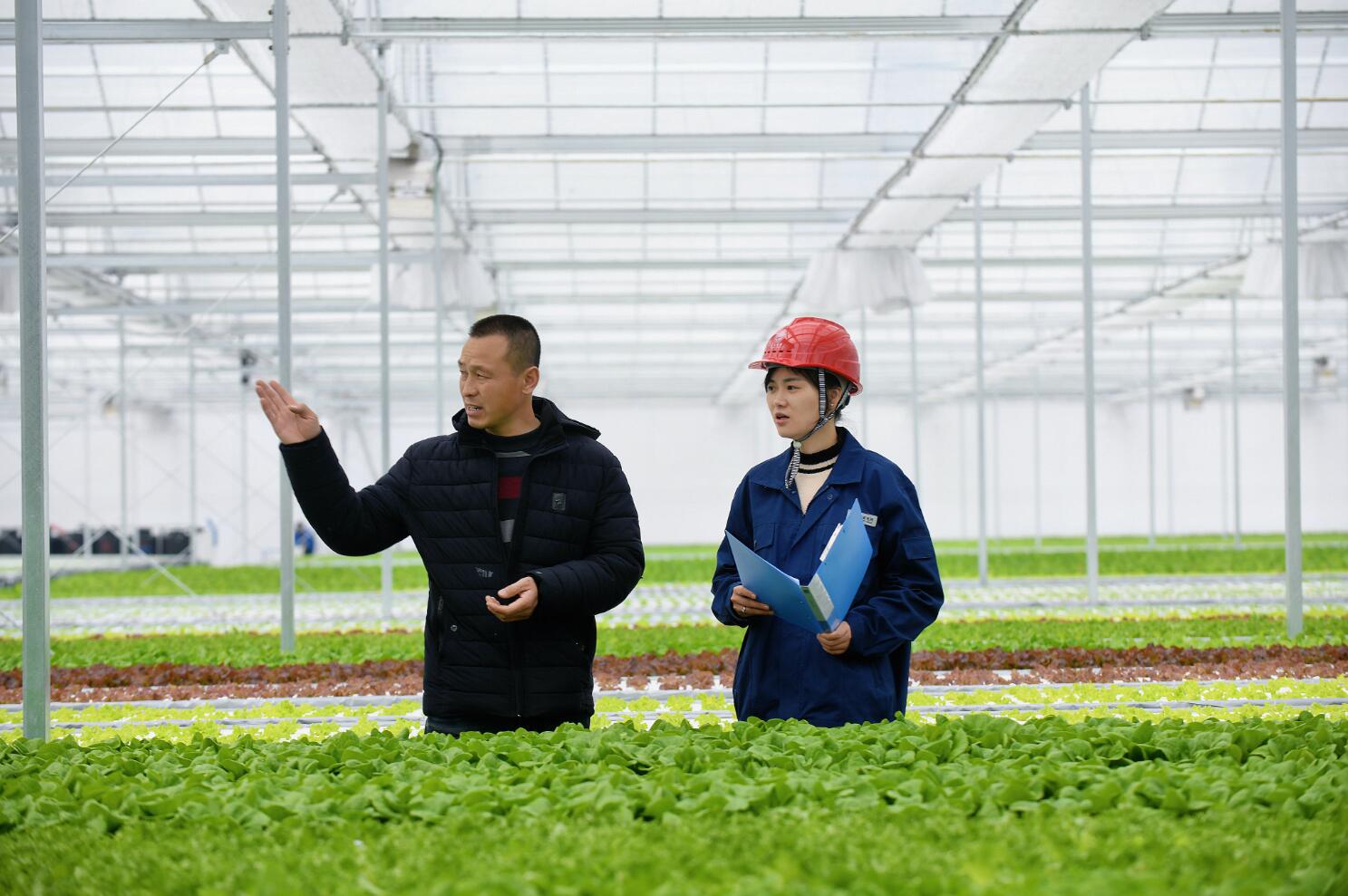 田野上的作物剛開始生長,各種現(xiàn)代化大棚里的蔬菜已經(jīng)煥發(fā)了盎然的生機。在橫坎頭村的蔚藍智谷植物工廠里,綠油油的菠菜、生菜、小松菜等蔬菜種在整齊的培養(yǎng)基上,一個個高大的溫室大棚連在一起,猶如工廠的車間,工作人員通過智能系統(tǒng)控制著溫度、濕度和營養(yǎng)液輸送。這樣的農(nóng)業(yè)種植模式打破了傳統(tǒng)的種植概念,將蔬菜種植“工廠化”,品質(zhì)和市場都得到了良好的保障。