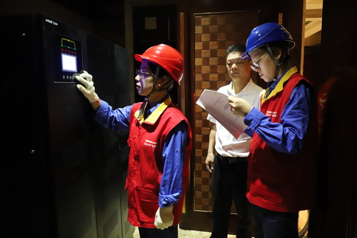 中國電力網(wǎng)訊(通訊員江志明、朱珊珊) 5月15日下午14時,在寧波華僑飯店有限公司華僑溫德姆至尊豪廷大酒店的配電房、會議場館隨處可見保供電人員的身影。在正式會議開始前,國網(wǎng)寧波供電公司海曙供電分公司將對現(xiàn)場所涉及的用電設(shè)備以及線路進行一次應(yīng)急演練。