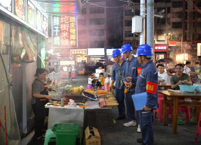 中國(guó)電力網(wǎng)訊(通訊員李朝輝、石汶汶)“老板,生意紅火哈,這是我們24小時(shí)服務(wù)熱線,有什么用電需求及時(shí)聯(lián)系我們?yōu)槟銈兎?wù)。”7月19日21時(shí)許,在德江縣坨街米線小吃夜市上,南方電網(wǎng)德江供電局城區(qū)供電所黨員服務(wù)隊(duì)隊(duì)員張權(quán)和同事張玉軍、胡冬林正在對(duì)夜市攤點(diǎn)開展夜間特巡特維,用可靠電力守住儺城“煙火氣”。