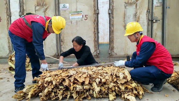 中國電力網(wǎng)訊(通訊員 李孟仁) 9月15日,在陜西省洛南縣古城鎮(zhèn)紅星村煙葉烘烤站,國家電網(wǎng)陜西電力(漢字故里)共產(chǎn)黨員服務(wù)隊(duì)隊(duì)員張文輝、董擁軍正在排查線路、設(shè)備隱患,宣傳安全用電知識,了解煙農(nóng)用電情況,護(hù)航煙葉生產(chǎn)。
