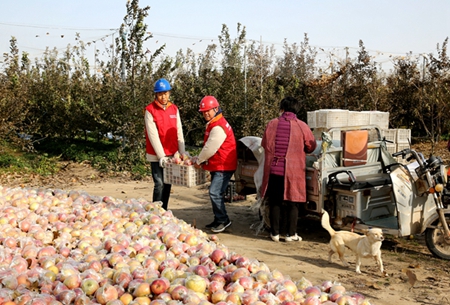 11月26日,國網(wǎng)江蘇電力睢寧縣供電公司王集供電所服務隊員來到蘇塘果園幫助果農采摘蘋果,并向他們介紹冬季安全用電和電力保護知識,深受果農好評。