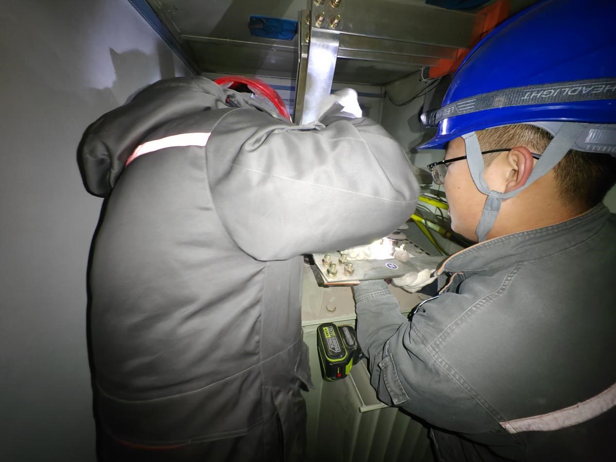 接到任務后,“電靚暖城”共產(chǎn)黨員服務隊第一時間趕往現(xiàn)場,經(jīng)過現(xiàn)場勘查發(fā)現(xiàn),由于大雪極寒天氣,居民取暖用電量急速攀升,導致負荷不均勻,小區(qū)箱變低壓母排燒損導致停電。由于夜間光線不足,給搶修工作增加了難度??蛋褪补╇姽旧a(chǎn)技術室迅速確認搶修方案,組織人員有序投入到搶修工作中,同時在供電服務群中向客戶實時反饋搶修進度和現(xiàn)場工作照片,得到了廣大群眾的理解和支持,消除了群眾對突發(fā)停電存在的疑慮。“天寒地凍家里突然停電,感覺心里都是涼的,看到你們過來,心里就像吃了定心丸,看到了希望。”神華小區(qū)87號樓業(yè)主說。