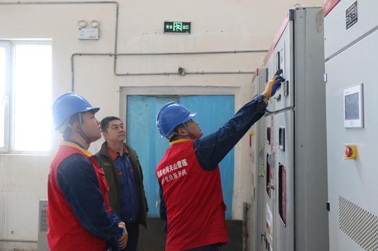 2月27日,國網(wǎng)阿克蘇市供電公司紡織城供電所黨員服務(wù)隊(duì)龔浩、梁昆對阿克蘇華星面粉有限公司開展節(jié)后用電檢查。邸敏 攝
