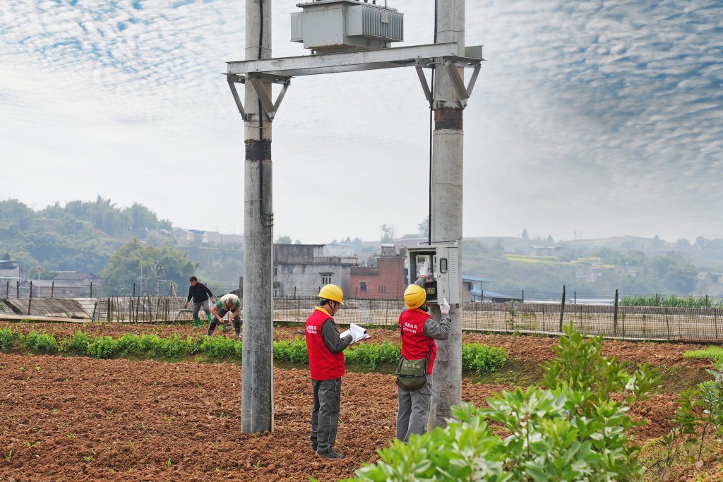 當天,國家電網(wǎng)紅巖(合川營銷)共產(chǎn)黨員服務(wù)隊、廣匯合川分公司黨支部黨員走進田間地頭,對提灌站、專用農(nóng)排線路、農(nóng)戶抽水等電力設(shè)施進行全面“體檢”,利用紅外測溫儀對變壓器樁頭、刀閘等易發(fā)熱點進行測溫檢查,對低壓灌溉線路、計量箱等設(shè)備進行重點巡視,及時發(fā)現(xiàn)并消除隱患。