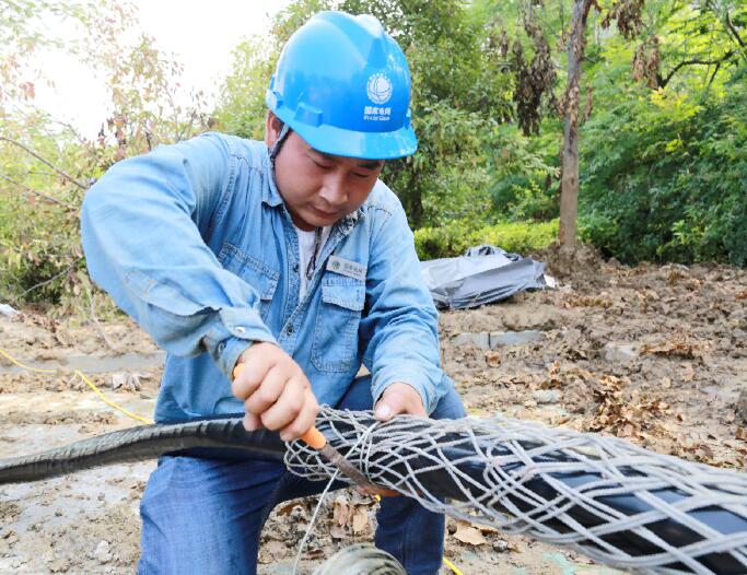 “前幾天的大雨把電纜井灌滿,從早上七點開始,我已經安排了兩臺水泵不間斷地抽水,我們只有穿著高筒雨靴在井里通電纜了,大家要記住今天必須完工,明天又要下雨了,接下來,按照班前會的安排開始干活,大家注意安全……”負責利辛一中濱河校區(qū)高考考點電力施工現(xiàn)場的工作負責人楊虎對班組成員說。